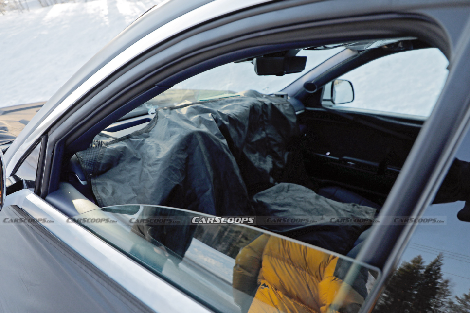 포착된 실내 디자인은 그야말로 제네시스가 가진 실내 장인정신의 총합입니다. 파란색과 보라색이 조합된 소프트 나파 가죽, 메탈릭 라인, 파이핑, 그리고 전 좌석 다단 전동 조절 기능이 적용된 시트가 보였습니다.
